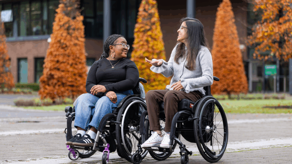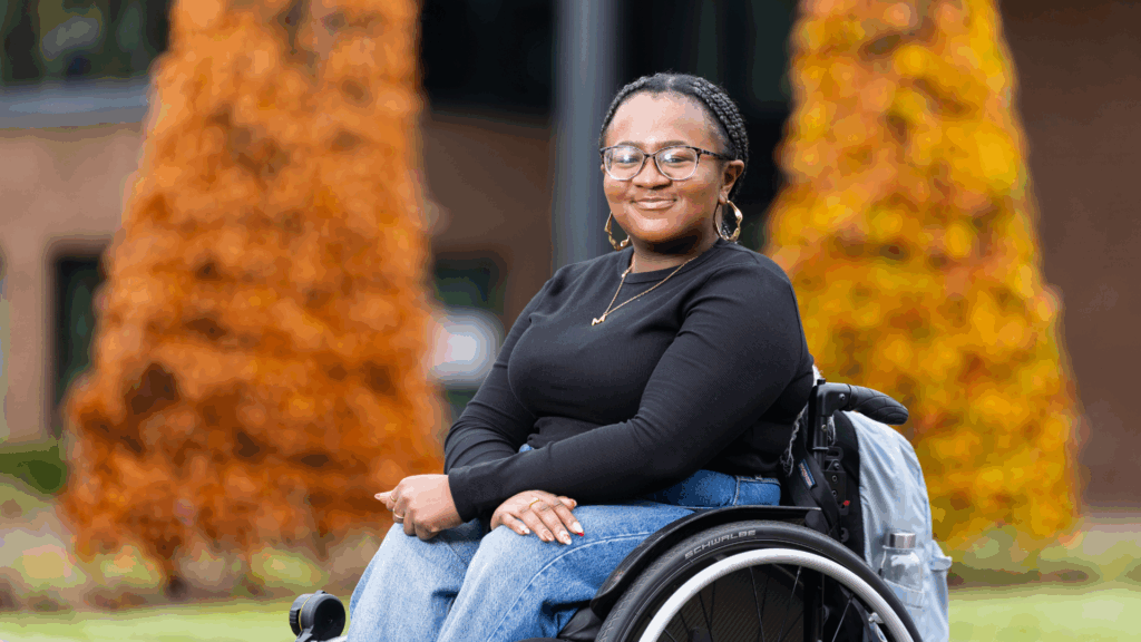 My first few months on campus were a challenge. Accessibility around campus was difficult – since I didn’t know the ins and outs, like where the lifts were or where was the closest accessible toilet was. But the longer I was on campus the more accustomed I became to things. I made an amazing group of friends that have been with me since my 2nd year. They have been there for me in many ways, whether it’s grabbing lunch in between classes or helping me carry my backpack to and from classes. I am very grateful for them. I’m a lot more comfortable around campus often finding myself helping others.
